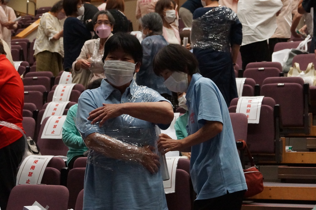 研修②は「身近なものを使った応急手当」で熱中症や食品用ラップ・レジ袋を使った応急手当等を参加者にも体験していただきながら学んでいただきました。