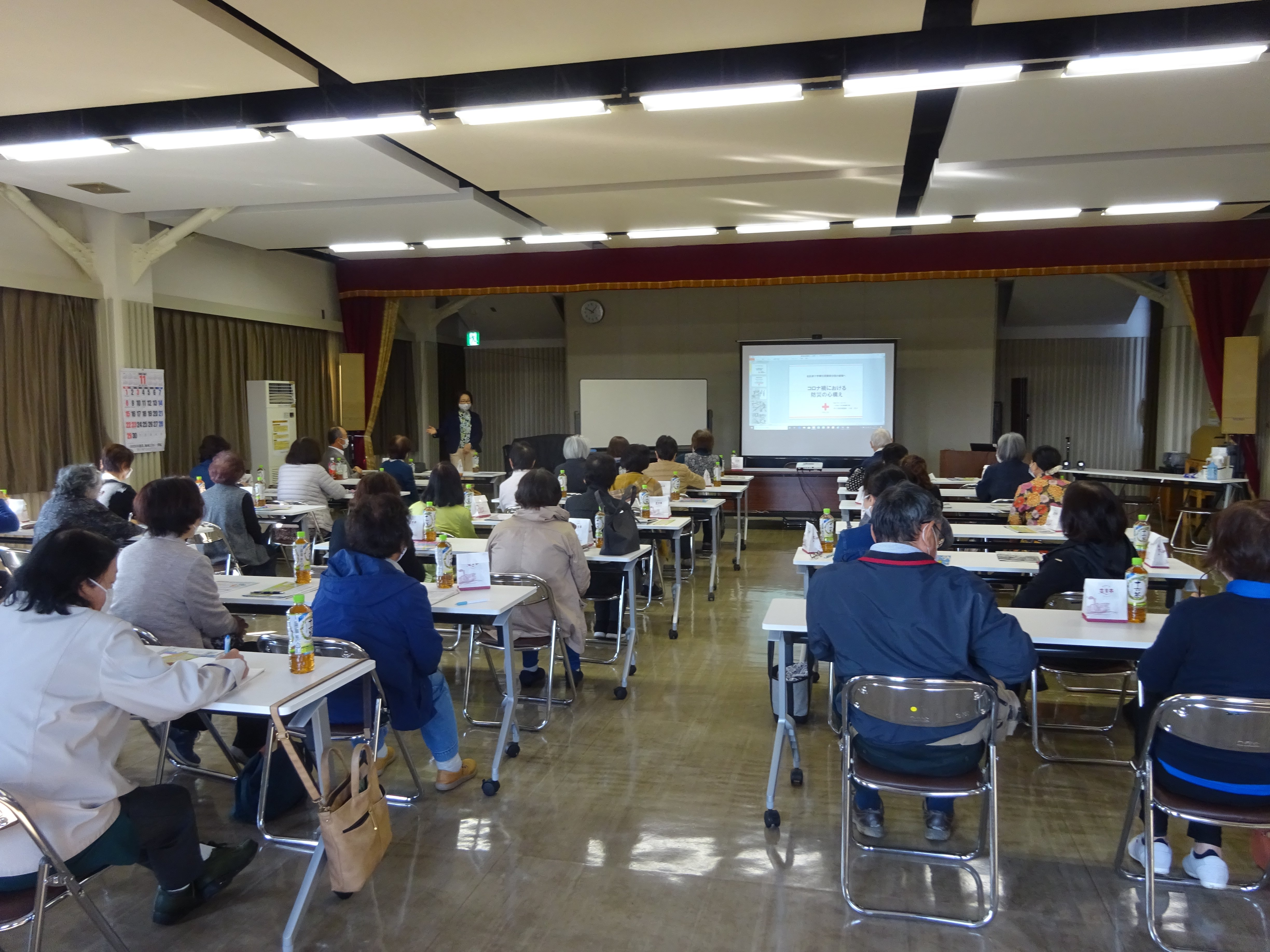 今回は赤十字奉仕団指導講師より、防災の話題を中心として、奉仕団員同士のつながりの重要性について講演しまし た。また、新型コロナウイルス感染症のもつ「3つの顔」(病気・不安・差別)についてもお話しさせていただきました。