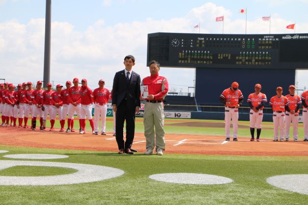 ホーム開幕戦のセレモニーとして、代表取締役社長の池田様より日本赤十字社新潟県支部へ活動資金が贈呈されました。
