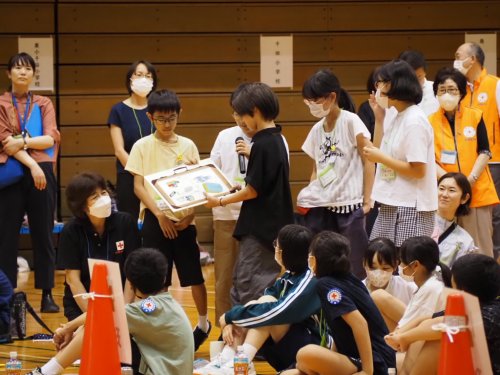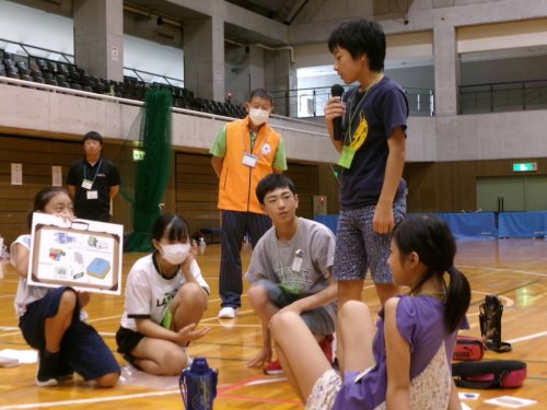 7月25日・26日 | 1日目は小学生、2日目は中学生が参加し、防災などについて体験学習を行いました。避難するときに持ち出すものについて話し合ったり、普段からできることについてチームで考えたりしました。 | |
