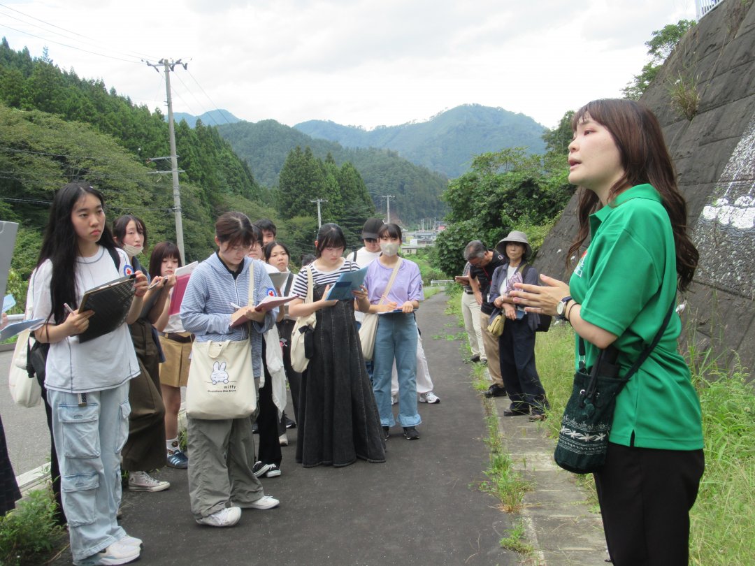震災当時中学生だった語り部の川崎杏樹さんと一緒に、実際の避難経路を歩きました。