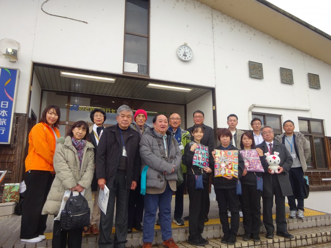 12月05日(13:10)、石川県七尾市(七尾駅)から「のと鉄道:語り部列車」に乗車して、語り部の皆様から能登半島地震の体験談や現在の様子など、車窓からの景色を見ながらお話を伺いました。
