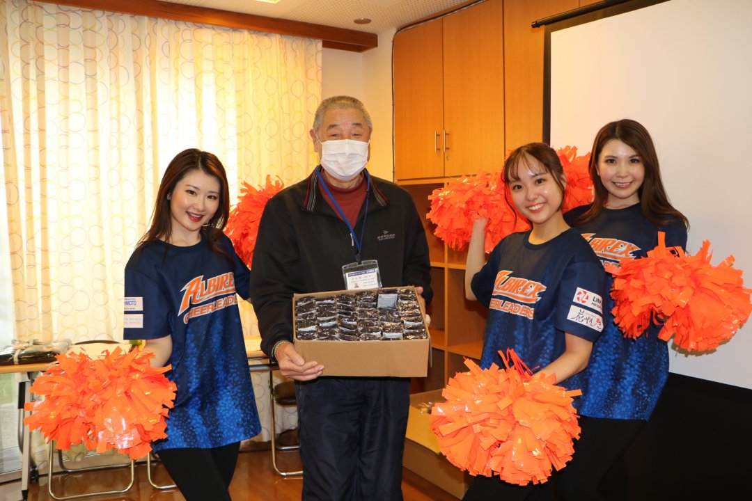 12月05日(14:00)、穴見町社会福祉協議会で交流会をさせていただきました。新潟のボランティア(ワンコインサロン)の皆様が制作した「毛糸のひざ掛けや帽子」やアルビレックスチアリーダーズから「エコバック」をお贈りしました。
