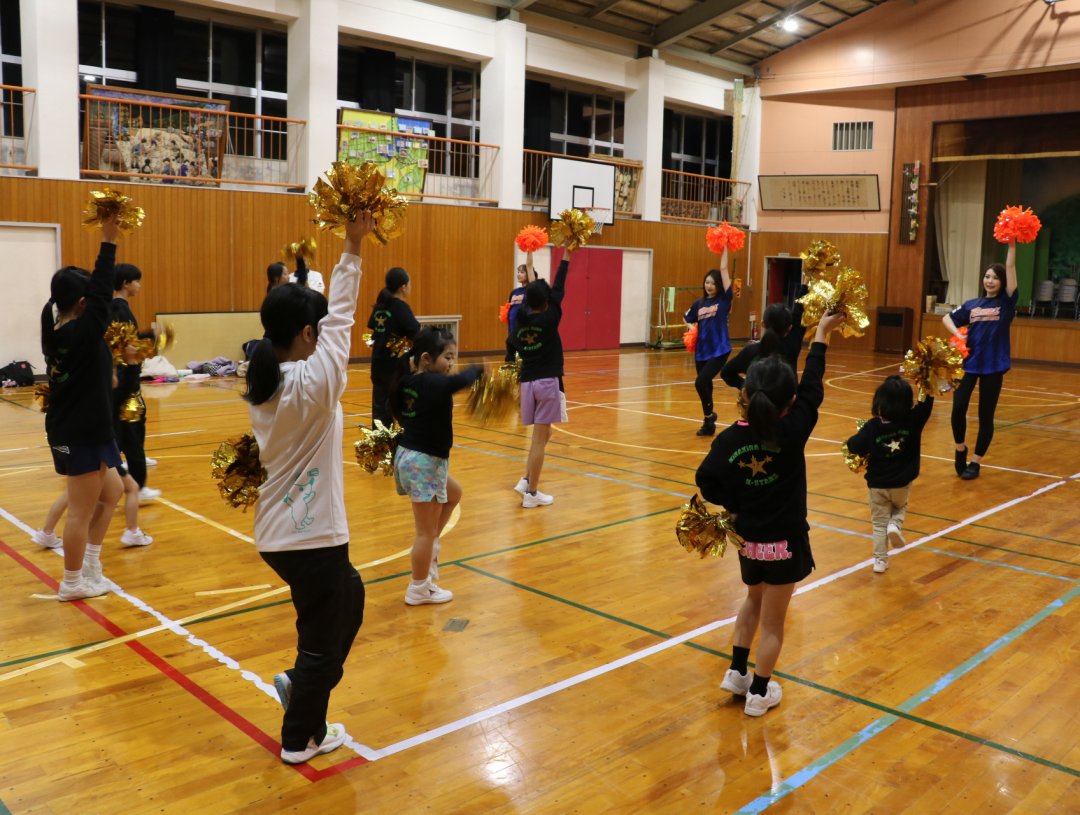 今回、同行していただいた地域貢献パートナー「アルビレックスチアリーダーズ」のメンバーから子ども達にパフォーマンスとレッスンをしてもらい、予定時間をオーバーするほど会場が盛り上がりました。