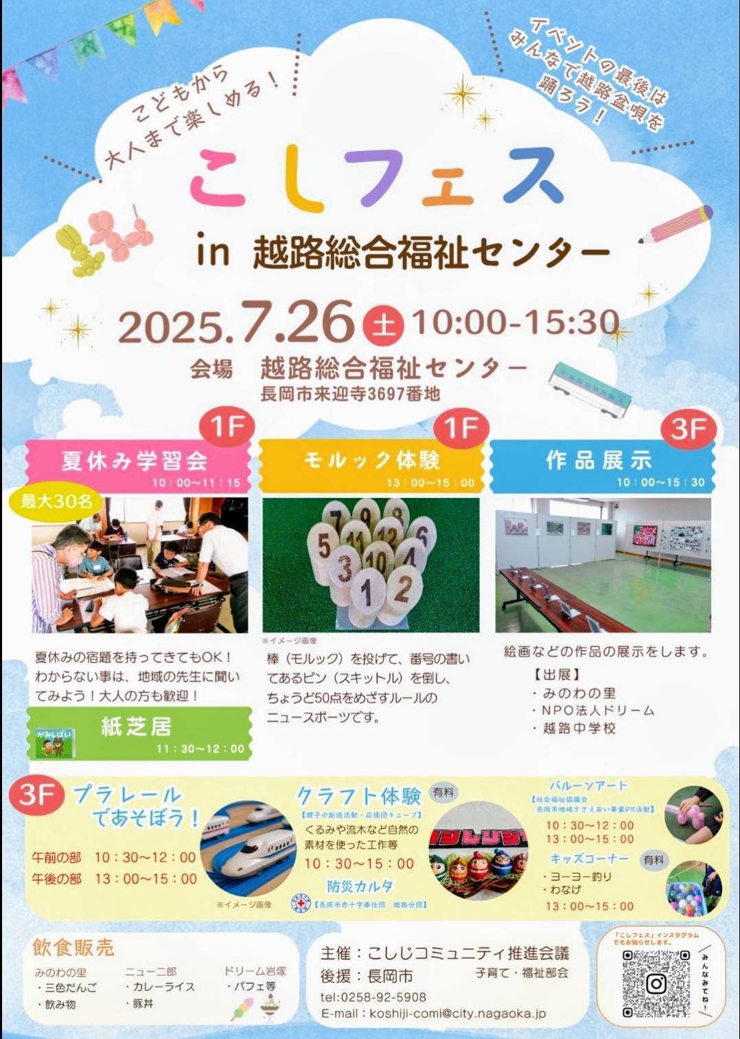 7月26日(土)10時00分~15時30分、越路総合福祉センターで「こしフェス」が開催されます。
