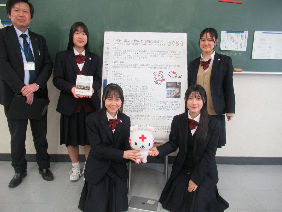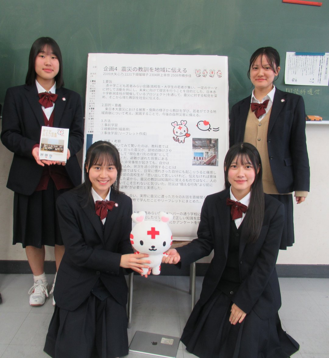 12月9日(火)、新潟県立新潟高等学校での探求学習発表会にて、赤十字こども若者みらい会議メンバーの4名が防災について発表を行いました。