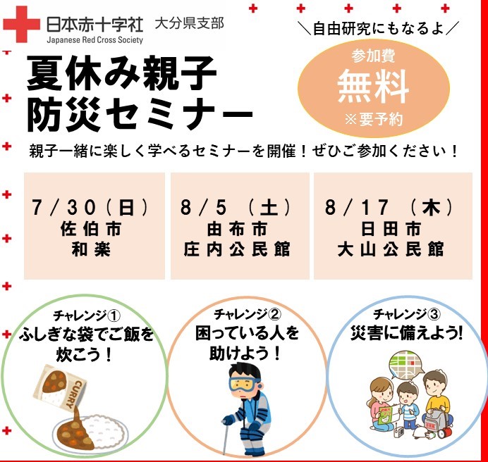 【参加者募集】夏休み親子防災セミナー(佐伯市、由布市、日田市)