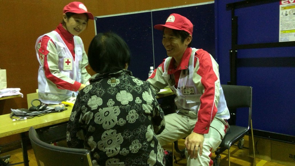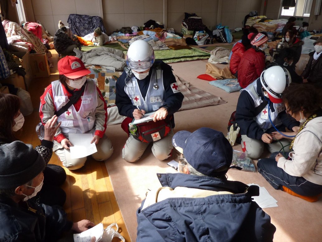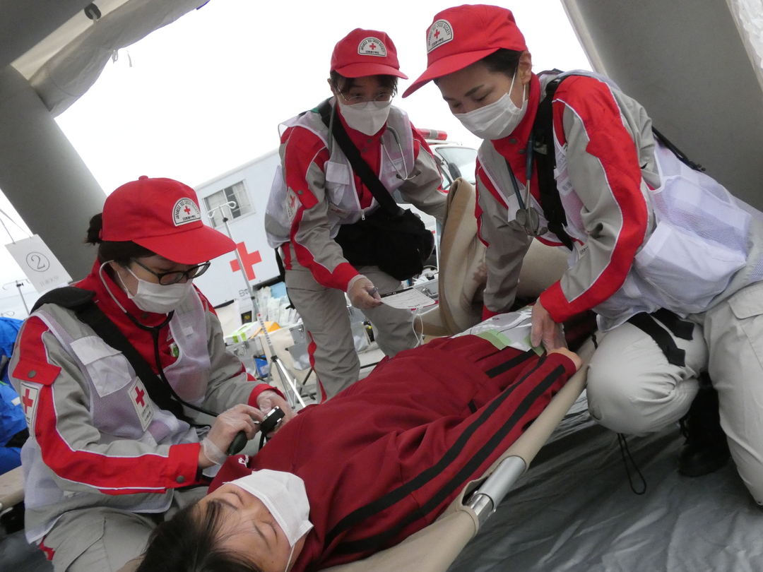 災害が発生すると、ただちに救護班やdERUを派遣し、救護所の設置、被災現場や避難所での診療、こころのケア活動などを行います。