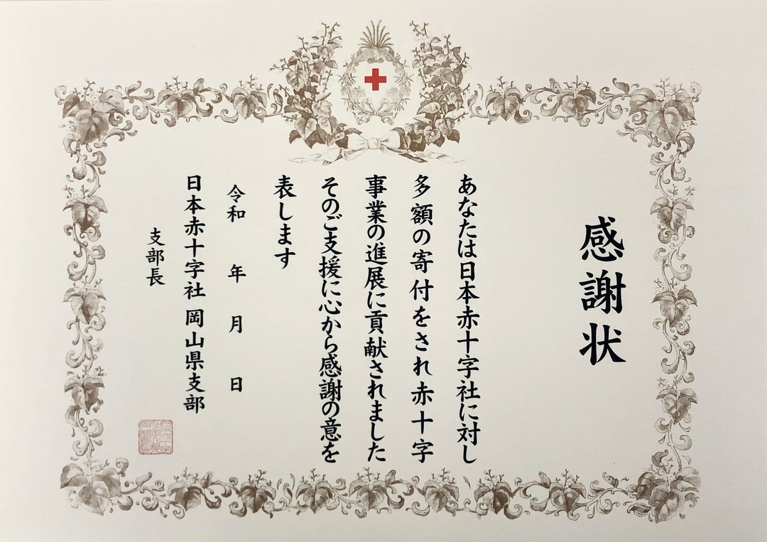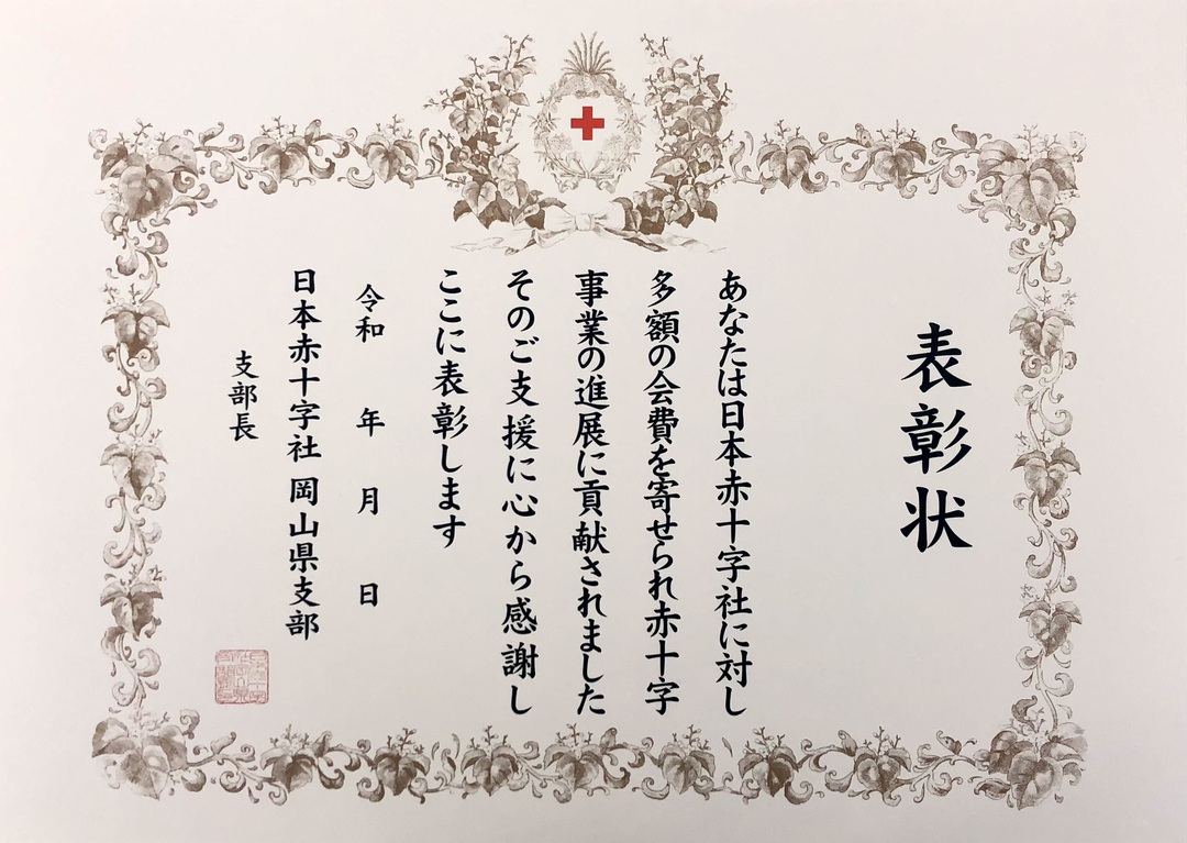 赤十字活動資金に多額のご協力をいただいた場合は、次のとおり表彰制度を設けております。