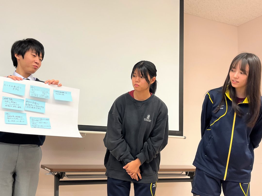 高校生の皆さんからは、「ハザードマップを確認して、実際に避難経路を歩いてみる」「自分の家の周辺の海抜を知っておく」「防災グッズの準備、普段から現金を持ち歩くようにする」「体力をつける」「避難訓練や、イベントを通して地域の人と関わる機会を増やす」「学校が避難所になるので、運営の練習をしたい」「地域の人にたくさん挨拶をする」といった多くの意見が出ました。