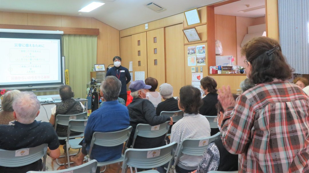 受講者の方からは、「親戚が被災した時にすごく心配だったことを思い出した。改めて災害への備えについて考えていきたい。」「津波警報が発令された際、近くの学校に避難した。皆さんもぜひ、自身が避難する避難場所については事前に把握しておいて欲しい」といったご意見があがり、防災について前向きに取り組む姿勢が見られる良い地域だなと感じました。