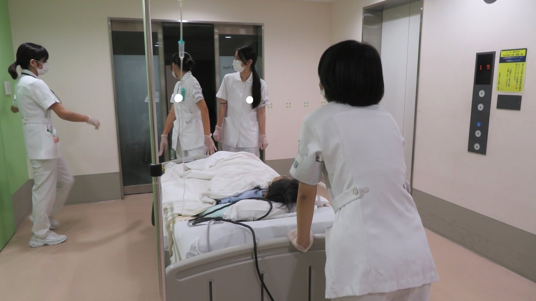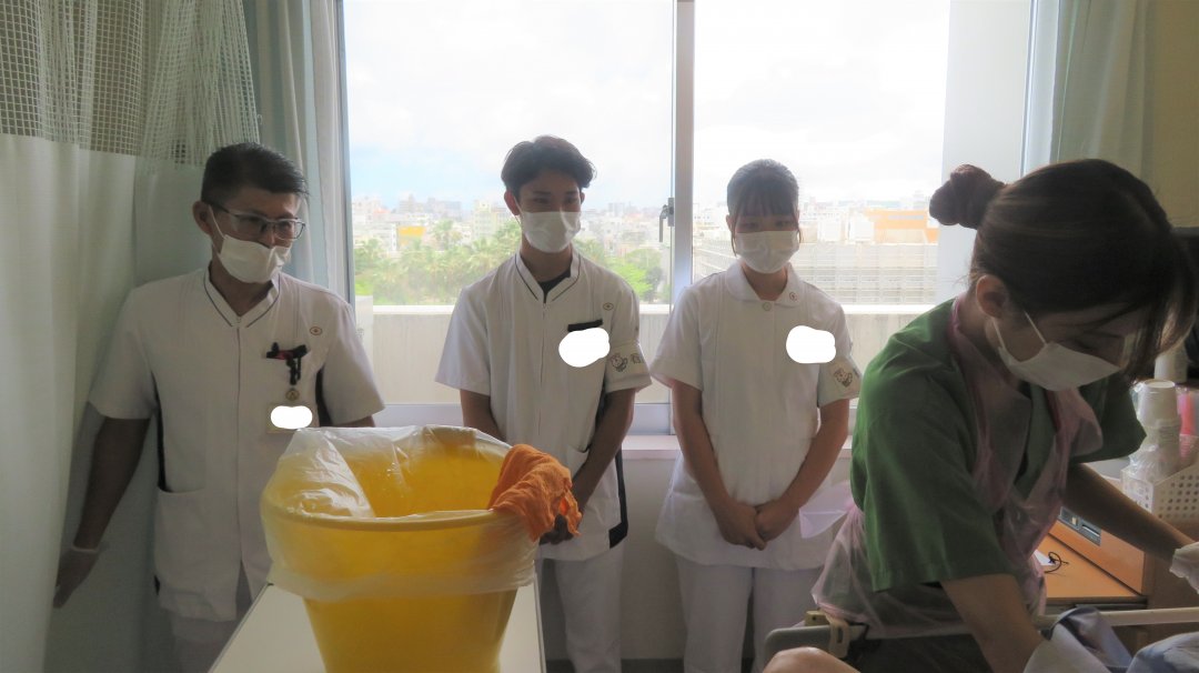 その後は4グループに分かれ、病棟にて、看護師と一緒に実習を行いました。