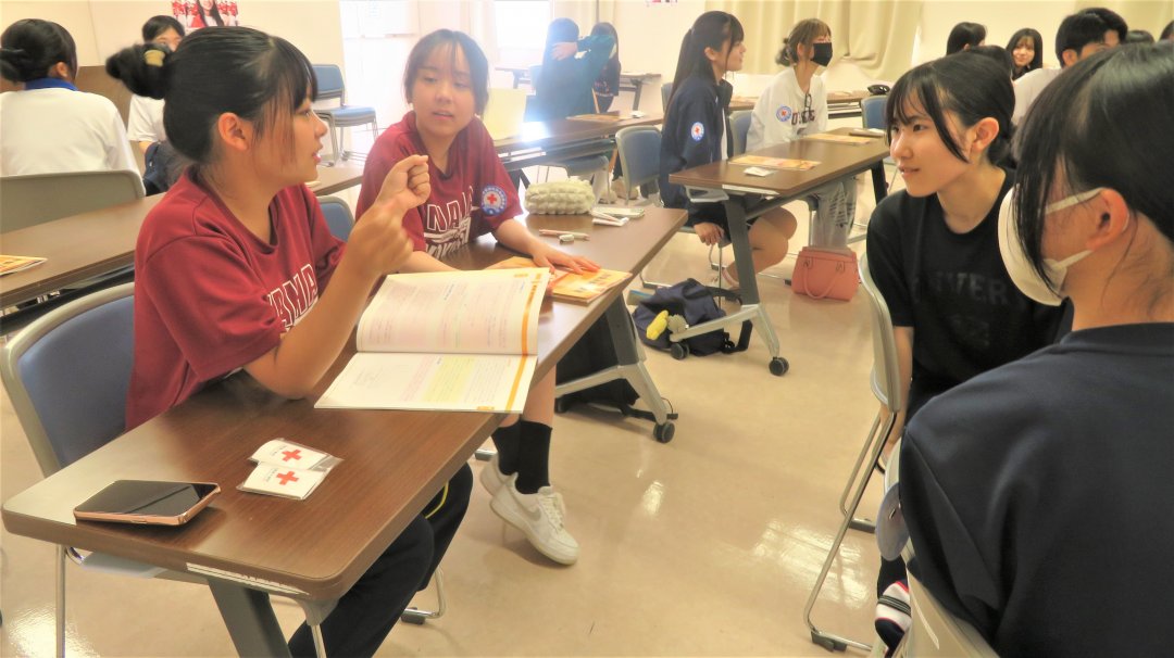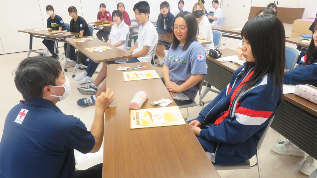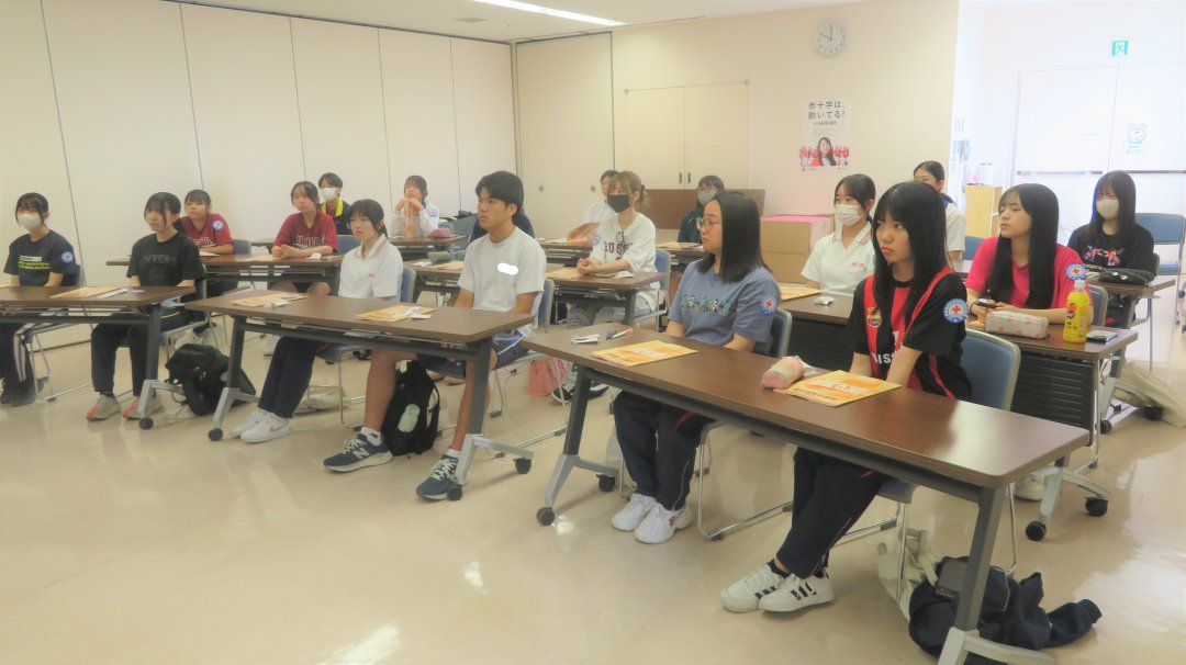 6月8日に沖縄県JRC(青少年赤十字)高校協議会の赤十字救急法基礎講習を、当県支部にて開催し、高校生18名が参加しました。