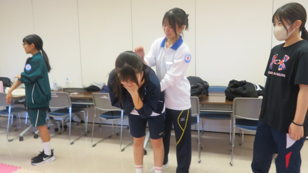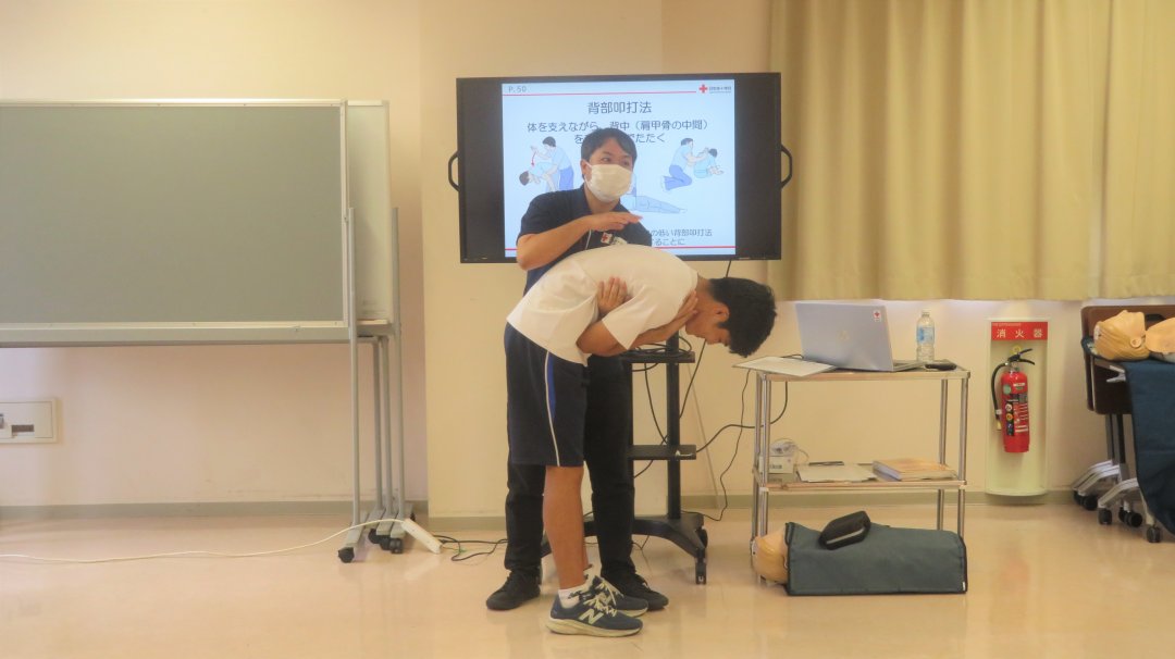 喉に異物が詰まった時の対策「気道異物除去」も学習しました
