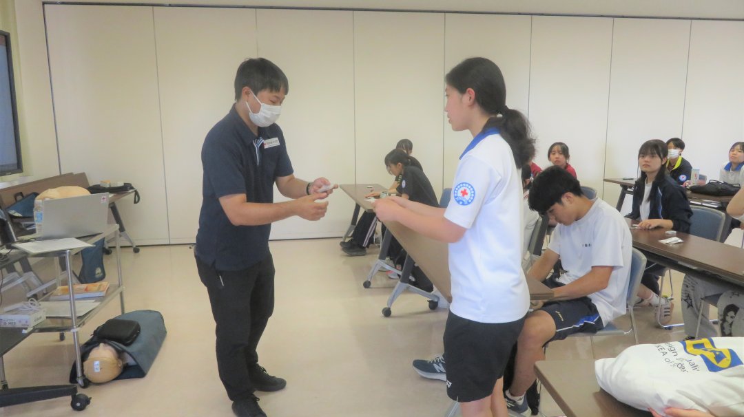 7月5日(土)に開催予定しているキッズ向け「赤十字ふれあいフェスティバル(於:イオン南風原)」にて、救急法(AED)ブースを設置するため、高校生メンバーから「救急法を勉強したい」との声が上がり、開催することになりました!