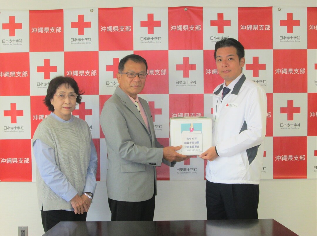 糸満市赤十字奉仕団、潮平中学校、西崎中学校、沖縄水産高校 様より令和6年能登半島地震災害義援金をお預かりしました