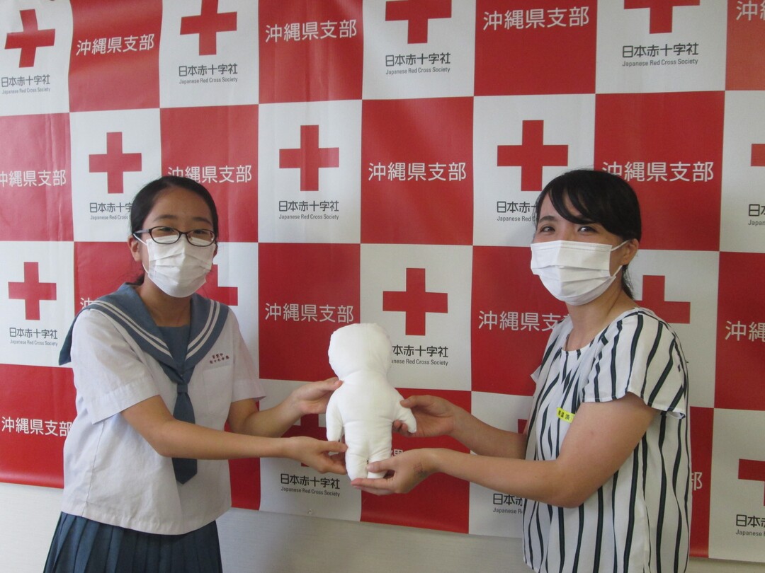 首里中学校生徒から南部医療センターへキワニスドールが贈呈されました