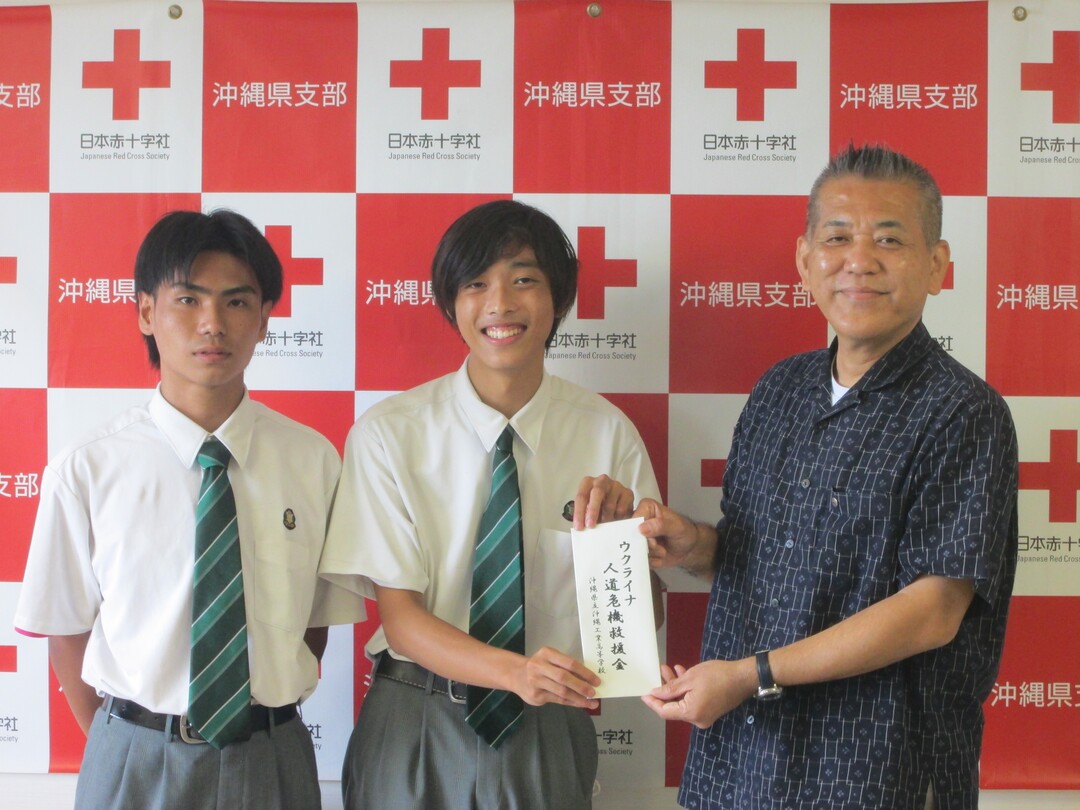 JRC加盟校生徒(沖縄工業高校)からウクライナ救援金が贈呈されました