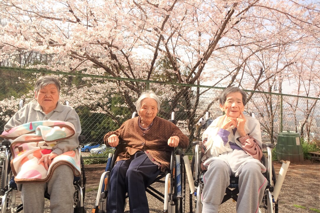 特別養護老人ホーム小川ひなた荘では、毎年、敷地内でたくさんの桜が花を咲かせます。