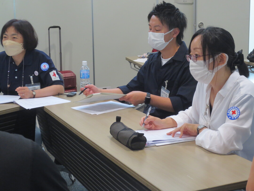 参加者は、児童生徒になったつもりでトレセンの内容を自ら体験したほか、ベテラン指導スタッフからプログラムの指導展開、青少年赤十字向け防災教育教材の活用方法などを学びました。最終日には、「今回のプログラムで学んだことをどう活かすか」というテーマのもと、ワークショップ形式で発表を行いました。