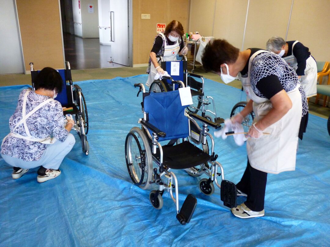 その車いすをきれいにしてくださっているのは、熊谷市赤十字奉仕団妻沼分団の皆様です。
