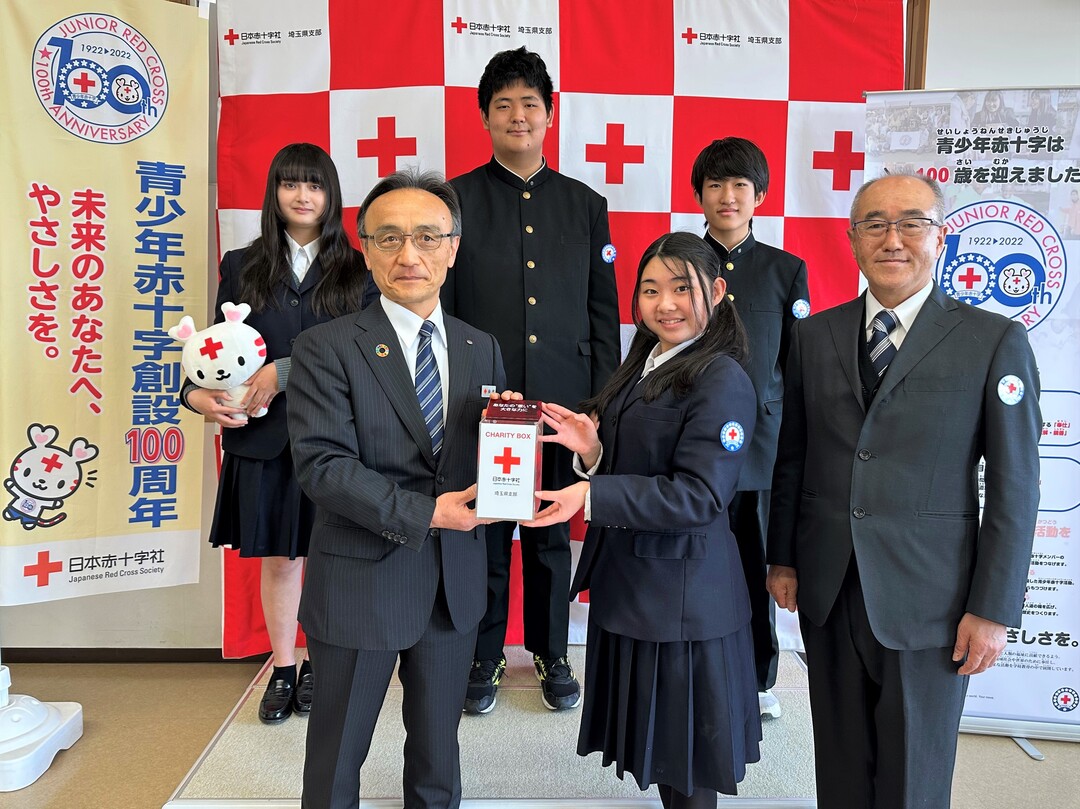 3月29日(水)、青少年赤十字加盟校であるさいたま市立浦和南高等学校(学校長:田邉広昭)の生徒の代表4名と教員1名が当支部を訪れ「2023年トルコ・シリア地震救援金」の受領式をおこないました。