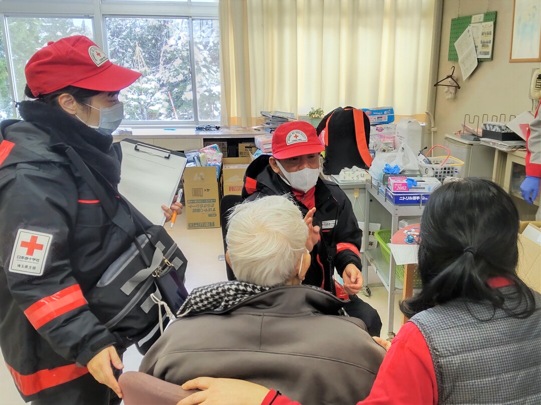 1月6日(土)には、当支部1班目となる救護班を小川赤十字病院から派遣、甚大な被害を受けた珠洲市を中心に活動しました。派遣初期は、地元の宿泊施設を確保できず、市内の駐車場をお借りしてテントを張って生活しました。