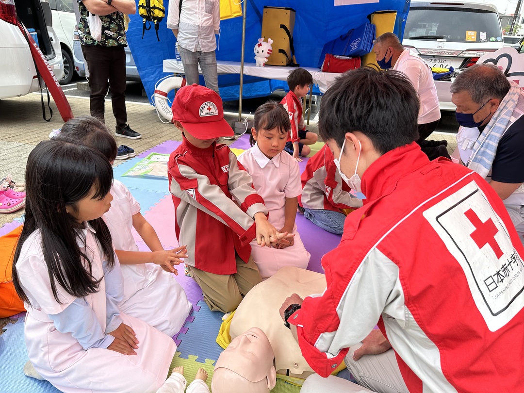 子どもたちが地域社会・生活環境への関心を高めること、大人たちとの体験を通して地域の一員としての意識高揚を図ることを目的に実施しているこの行事。当日は晴天に恵まれ、学校の関係者のほか地元の赤十字ボランティアも参加しました。