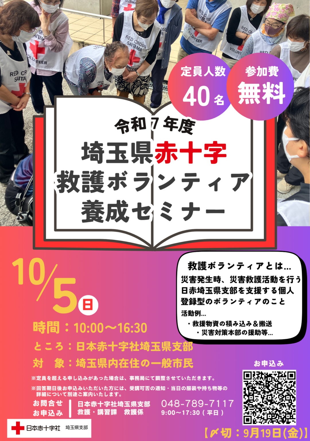 参加者募集!令和7年度 埼玉県赤十字救護ボランティア養成セミナーの開催について