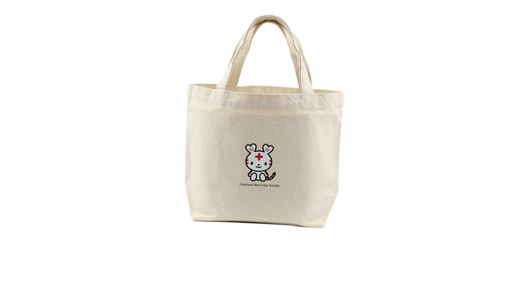 日本赤十字社の公式キャラクター「ハートラちゃん」ワンポイント入りのミニトートタイプのエコバッグ。