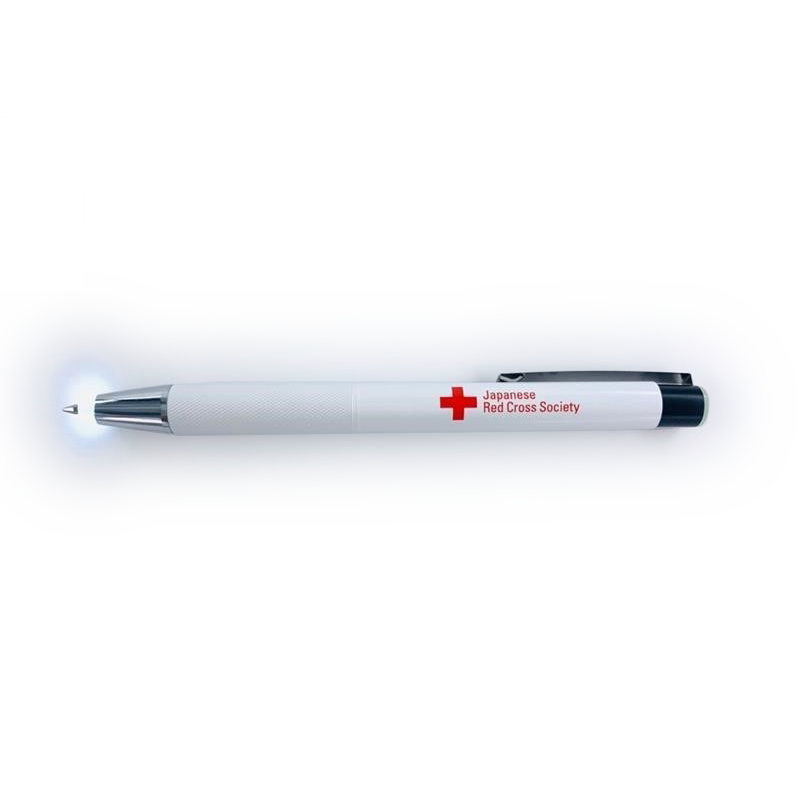 ペン先にライトを搭載し、暗い場所でも光を照らして書けるボールペンです。