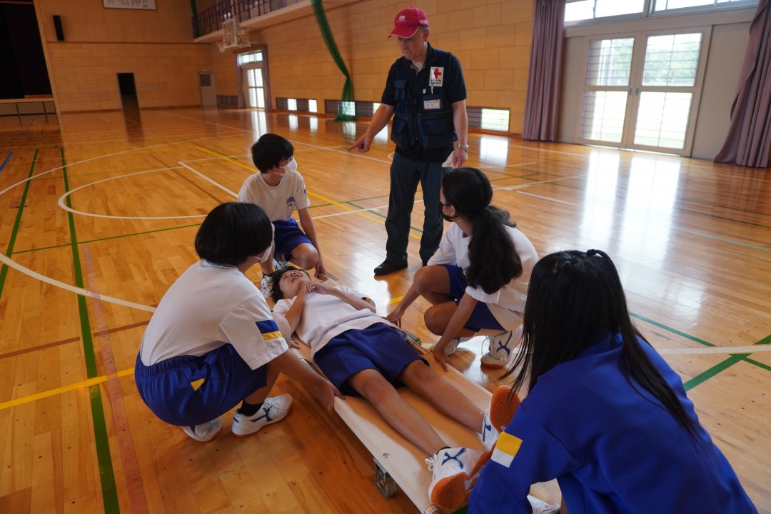 滋賀県防災支援赤十字奉仕団が東近江市立五個荘中学校において防災学習を実施しました。