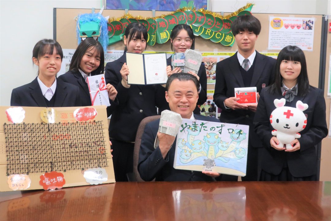 島根県立三刀屋高校JRC部メンバーが高校生ボランティア・アワードの受賞報告のため知事訪問しました