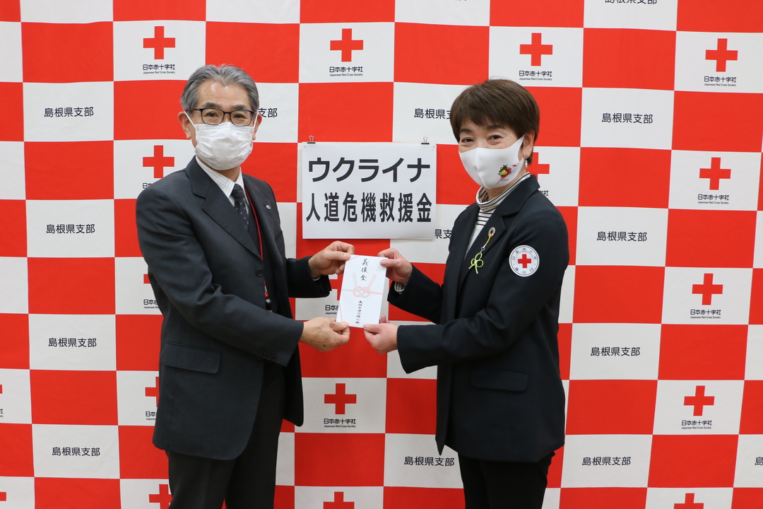 令和4年3月23日、島根県連合婦人会様より「ウクライナ人道危機救援金」をご寄託いただきました。