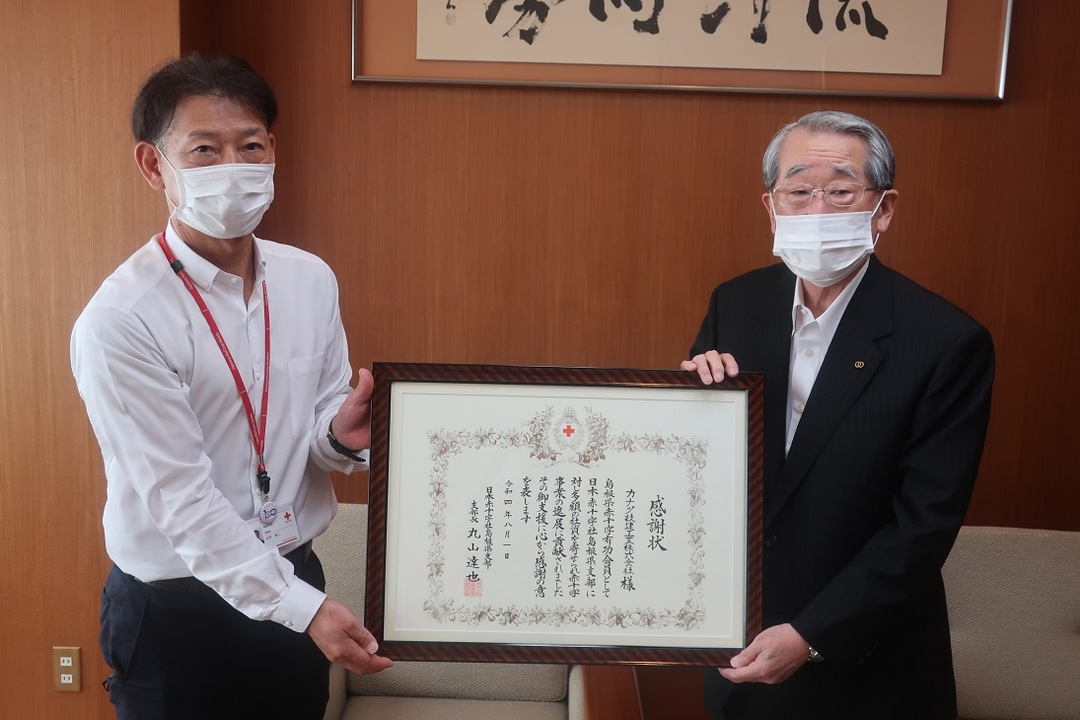 赤十字に多額の活動資金をお寄せいただいた皆さまに対して、このほど支部長感謝状を贈呈しました。