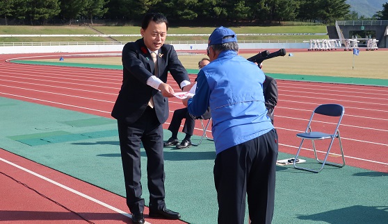 10月17日(火)、島根県立浜山公園で開催された『第5回島根県知事杯グラウンド・ゴルフ交歓大会』において、主催する島根県グラウンド・ゴルフ協会様から、赤十字への寄付金(活動資金)をお寄せいただきました。