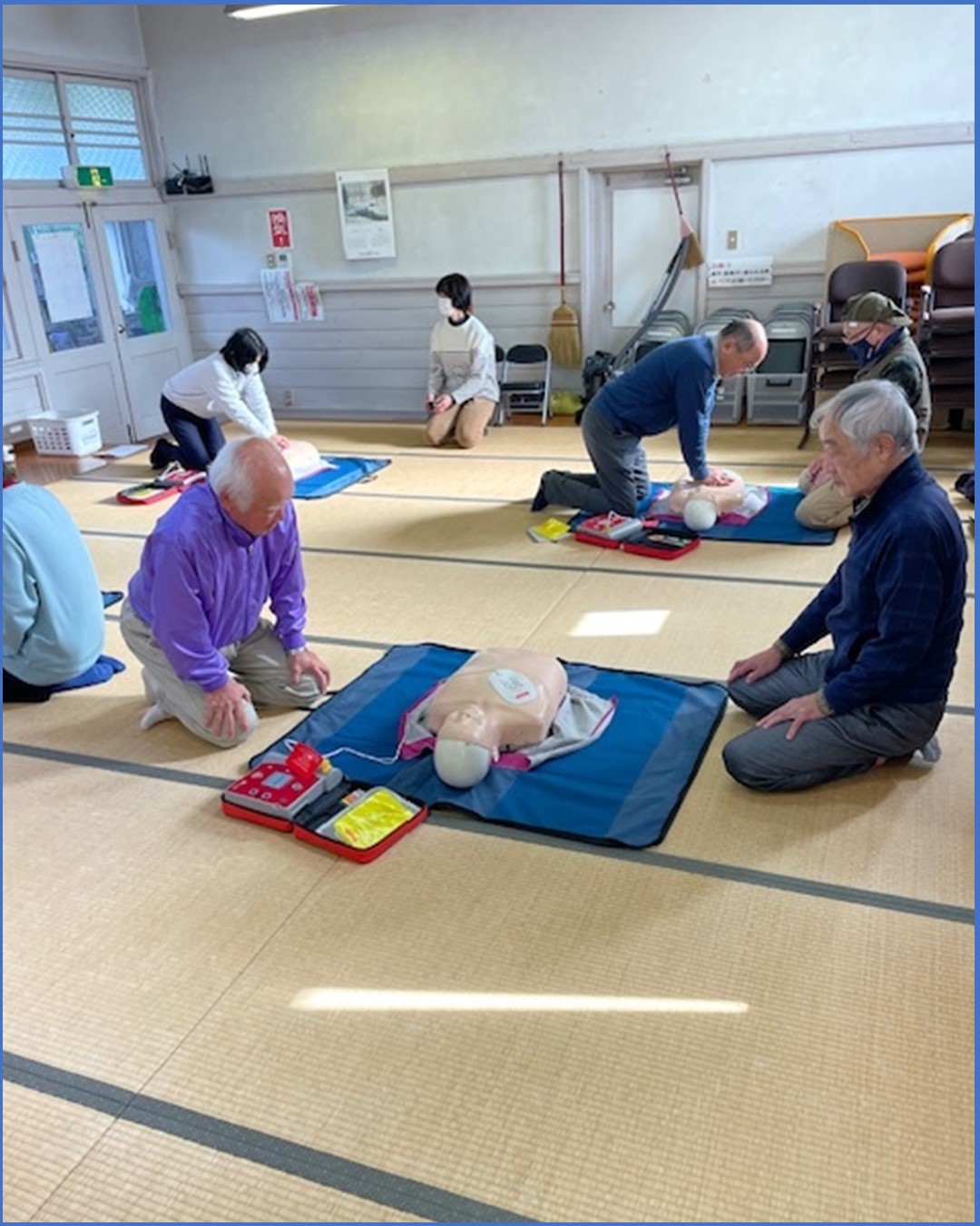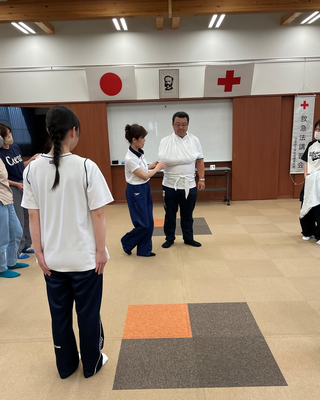日常生活における事故防止や手当ての基本、胸骨圧迫や人工呼吸の方法、AED(自動体外式除細動器)を用いた除細動、止血の仕方、包帯の使い方、骨折などの場合の固定、搬送、災害時の心得などについての知識と技術を習得できます。