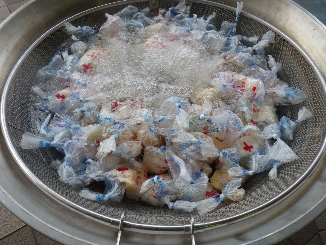 この炊き出し器材は、軽く持ち運びが容易で、災害時に多くの被災者に温かい包装食を提供することができます。