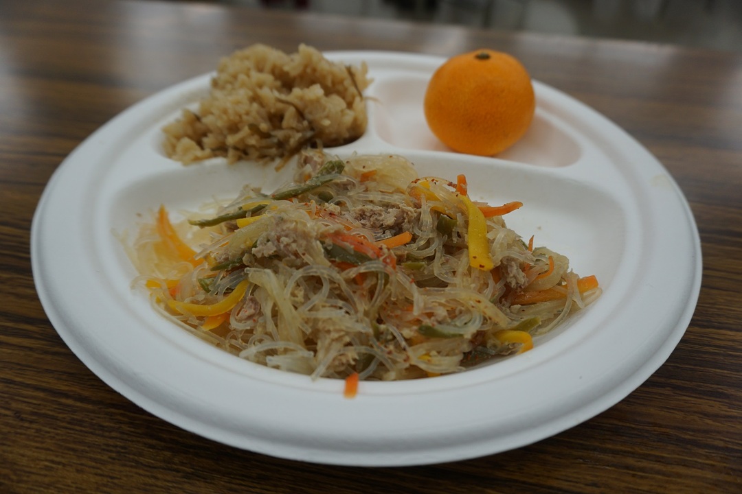 温かい食事で被災者に寄り添います(写真はチャプチェ)