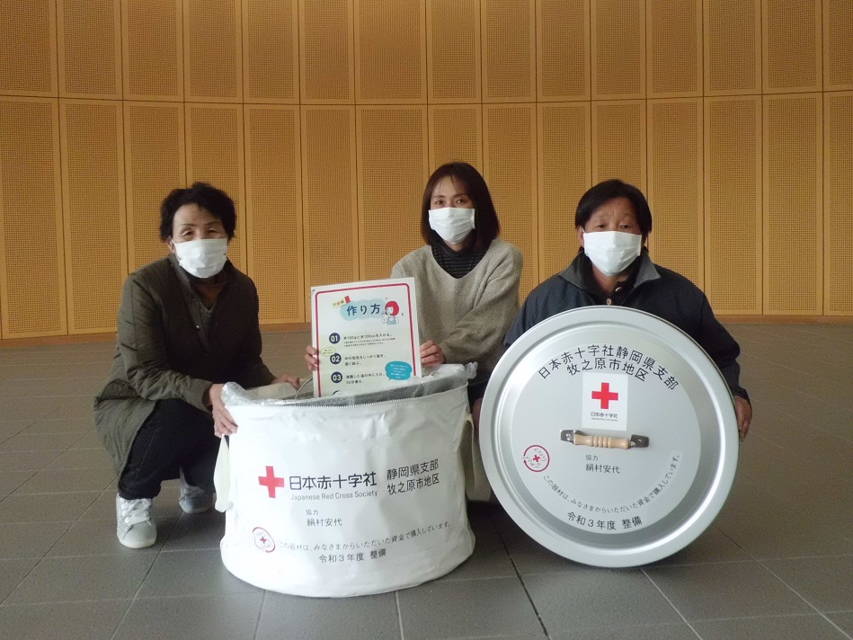 日本赤十字社静岡県支部は、令和3年11月に沼津市赤十字奉仕団と牧之原市赤十字奉仕団へ炊き出し器材を整備しました。