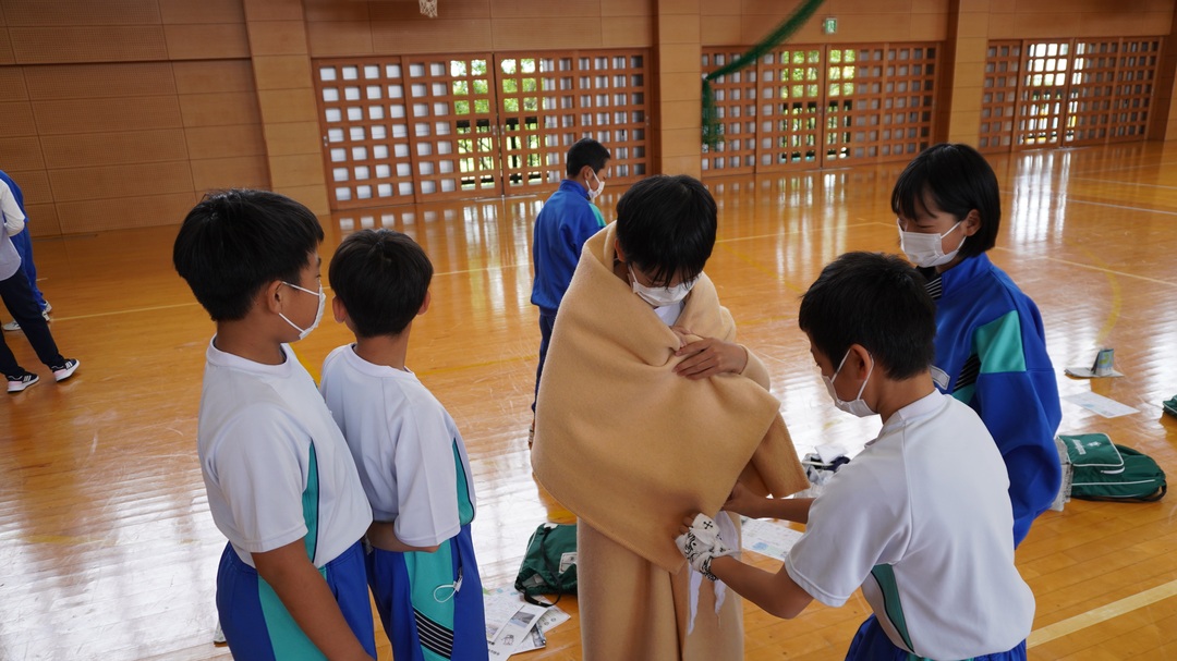参加した生徒は、「こんな小さな袋(包装食袋)でご飯が炊けるのはすごい」「防寒対策の毛布ガウンを家でもやってみたい」と防災意識の向上が感じられました。