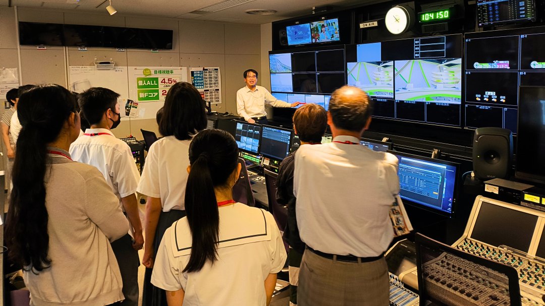 静岡新聞社・静岡放送では、企業が取り組んでいるSDGsやTeam Buddyの防災の取り組みについて講話いただいた後、テレビの制作現場やラジオの生放送、新聞の印刷工場を見学しました。また、昼食には、社員食堂の人気メニュー「ソイミート※を使ったガパオライス」をご提供いただきました。