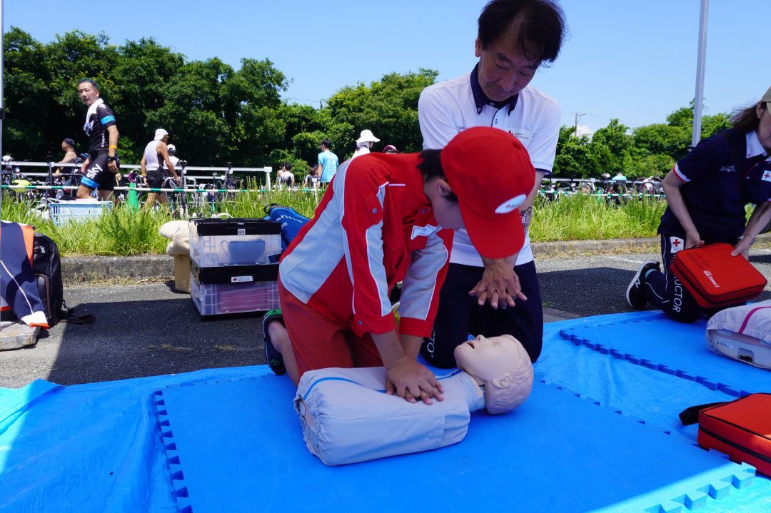6月29日(日)、浜松市中央区の村櫛海水浴場で開催された「レイクハマナ・トライアスロン大会in村櫛2025」にAED体験ブースを出展しました。