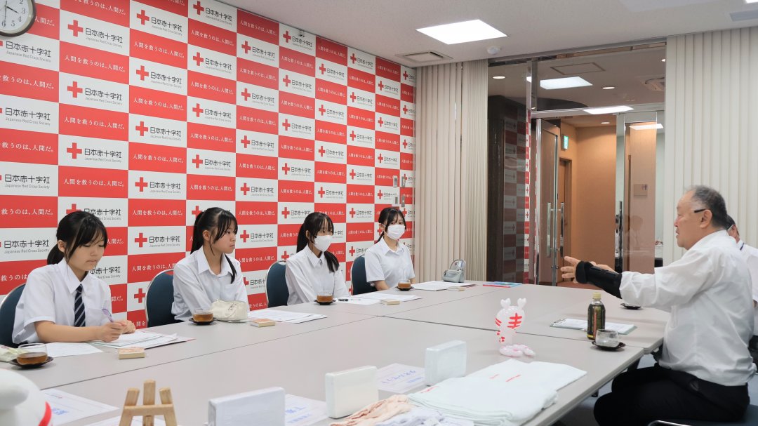 同校の総合的な学習の時間における「持続可能な静岡県」と題した探究活動の一環として、日本赤十字社静岡県支部の活動内容に対する訪問インタビューが行われました。