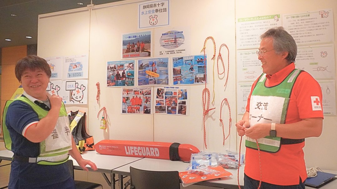 会場内には、静岡地方気象台や静岡市消防局、清水海上保安部、各赤十字奉仕団など12団体による交流コーナーが設けられ、来場者が防災や救急に関する知識・体験を深める場となりました。