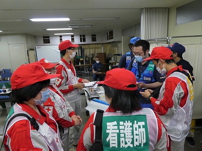 7月4日、伊豆赤十字病院から、救護班1班(6名)を派遣し、避難者51名のスクリーニング(※)を行い、内2名の診療に従事。