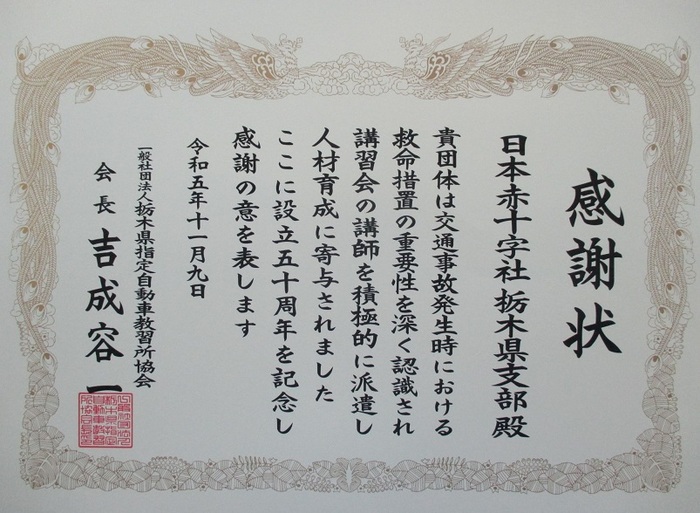 日本赤十字社栃木県支部 事業推進課 健康安全係 宛