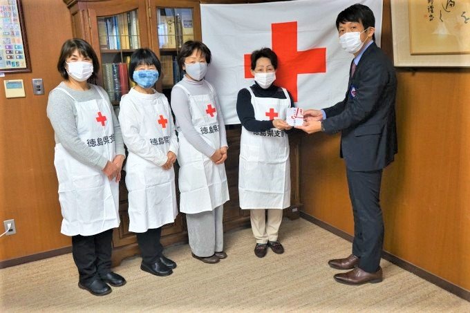 12月4日(金)、徳島市地区赤十字奉仕団加茂分団から、リサイクル活動によって集められた50,000円のご寄付をいただきました。