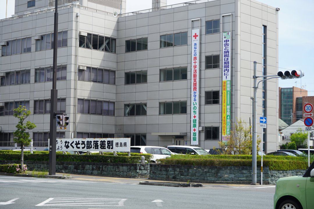 5月の赤十字運動月間に向け、徳島県東部県税局様のご協力をいただき、徳島合同庁舎に赤十字懸垂幕を4月12日、設置しました。徳島県庁舎への設置は当支部では初めてであり、今後は6月、7月、9月、12月にも設置を予定しております。