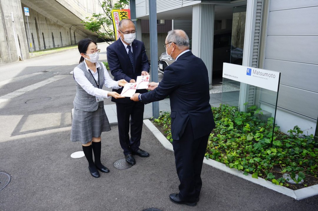 株式会社松本コンサルタント様(代表取締役 松本 祐一 様)、並びに社員の皆様から、創立50周年を記念して、それぞれ150万円(計300万円)のご寄付をいただきました。
